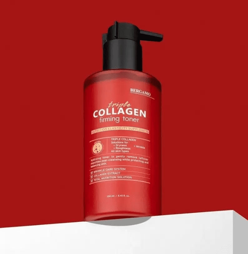 Укрепляющий тонер с тройным коллагеном для ухода за кожей после очищения помогает удалить омертвевшие клетки, способствует обновлению кожного покрова, а также уменьшает существующие признаки увядания, повышает эластичность кожи, защищает её от провисания, уменьшает глубину морщин, предупреждает появление новых. Тонер улучшает текстуру кожи и ухаживает за эластичным барьером, сохраняет прочной структуру кожи, питает для поддержания увлажняющей способности. Коллаген составляет около 40% белка, из которого состоит наше тело, и около 90% дермы кожи, и является важным ингредиентом для упругости кожи.